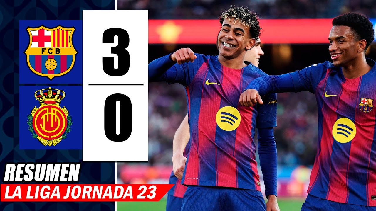 Le FC Barcelona a signé une victoire convaincante face à RCD Mallorca hier, samedi 7 février 2026, dans le cadre de la 23ᵉ journée de Liga espagnole en s’imposant 3-0 au Spotify Camp Nou. Cette performance a permis aux Catalans de conforter leur première place au classement de la Liga, avec désormais quatre points d’avance sur leur plus proche poursuivant. (Reuters)